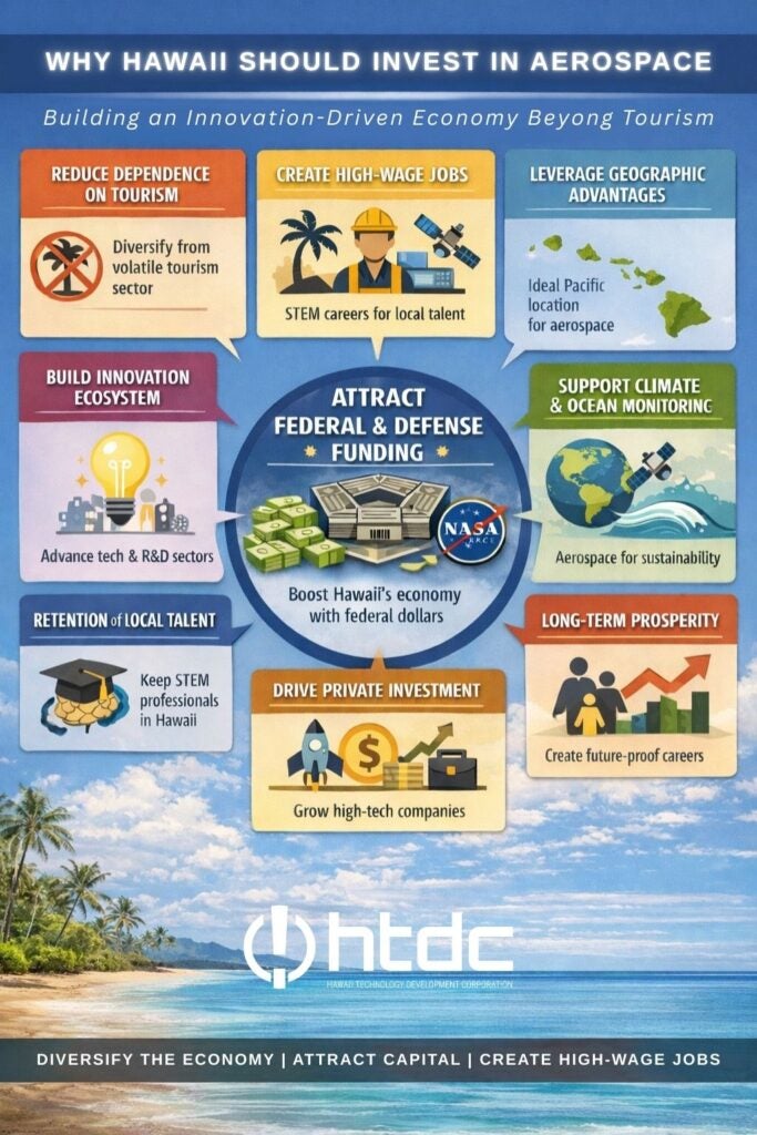 The Hawai‘i Technology Development Corporation (HTDC) is at the forefront of advancing aerospace technology and laying the groundwork for a statewide aerospace innovation corridor, positioning Hawai‘i as a globally competitive hub for next generation aviation and space technologies.